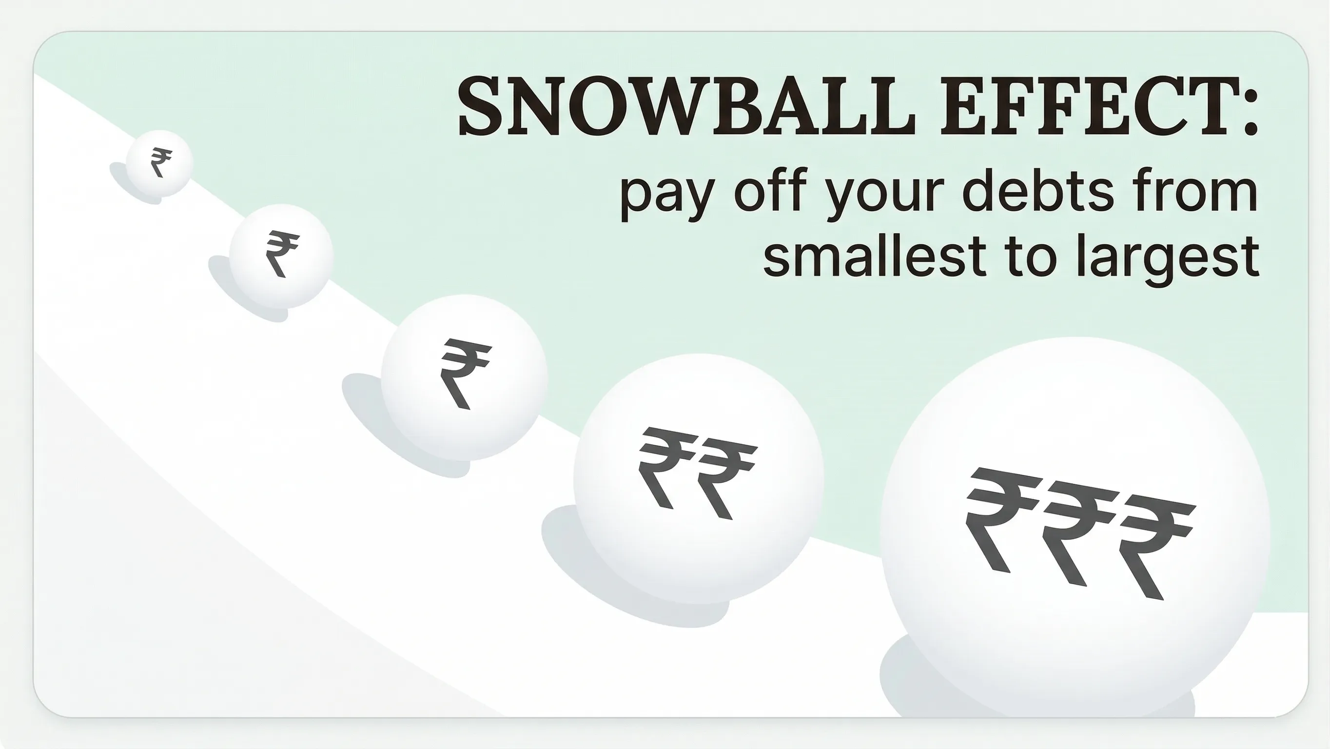 The debt snowball is a payoff strategy where you list all your debts from smallest balance to largest balance, ignoring interest rates completely. You make minimum payments on everything except the smallest debt. Every extra rupee you have goes to that smallest one. When it's gone, you take everything you were paying on it and roll it into the next smallest debt.